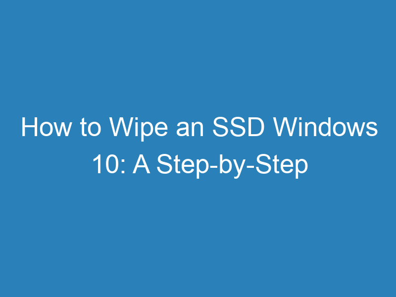 How to Wipe an SSD Windows 10: A Step-by-Step Guide to Securely Erase Data