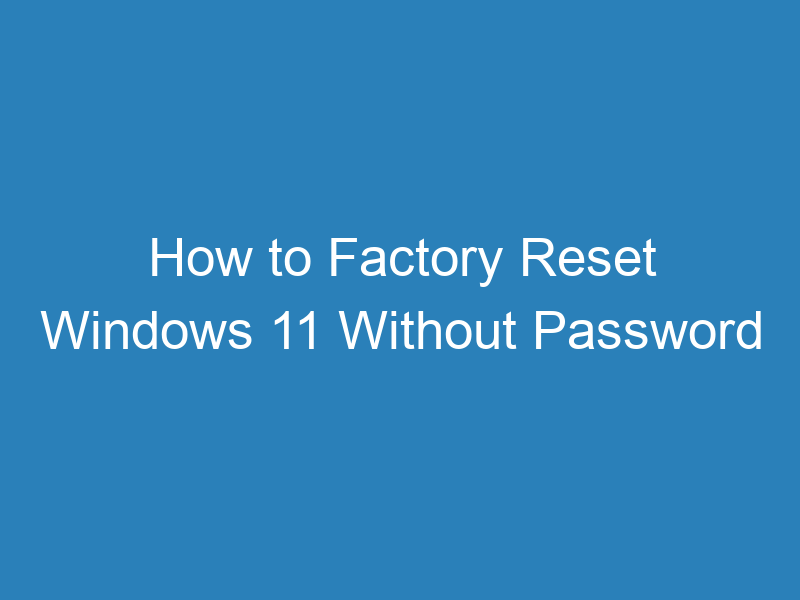 How to Factory Reset Windows 11 Without Password — A Step-by-Step Guide