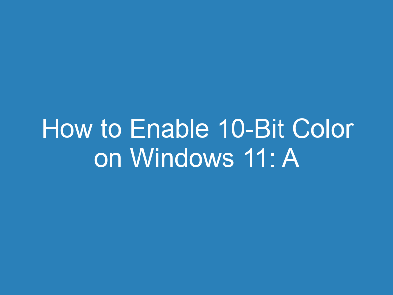 How to Enable 10-Bit Color on Windows 11: A Step-by-Step Guide
