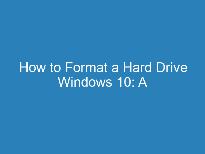 How to Format a Hard Drive Windows 10: A Step-by-Step Guide